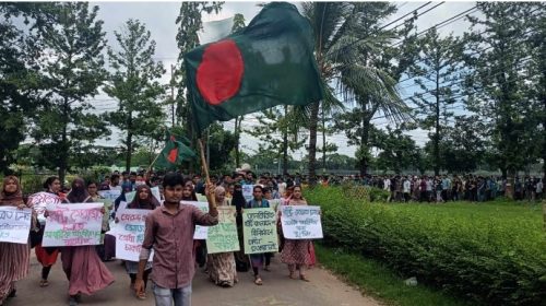 আগারগাঁও মোড় অবরোধ গান কবিতার শ্লোগানের শেকৃবি শিক্ষার্থীদের আন্দোলন