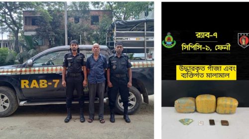 ১৫ কেজি গাঁজা উদ্ধার সহ মাদক ব্যবসায়ীকে আটক করেছে র়্যাব-৭