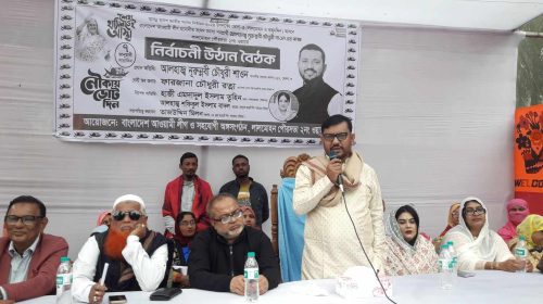 শেরপুরের নকলায় মিথ্যা মামলা দিয়ে হয়রানির প্রতিবাদে সংবাদ সম্মেলন