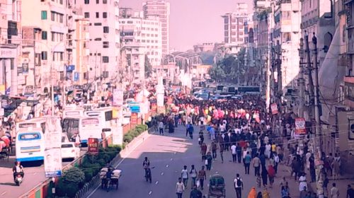রাজধানীর মিরপুর রাস্তা বন্ধ করে পোশাক শ্রমিকদের বিক্ষোভ মিছিল