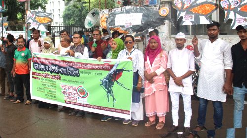 ডেঙ্গু সমস্যা সমাধানের দাবিতে প্রতীকী মশা মিছিল ও পুত্তুলিকা দাহ