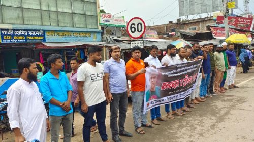 সাংবাদিক হত্যাকারীদের বিচারের দাবীতে ঝিকরগাছায় সাংবাদিকদের মানববন্ধন
