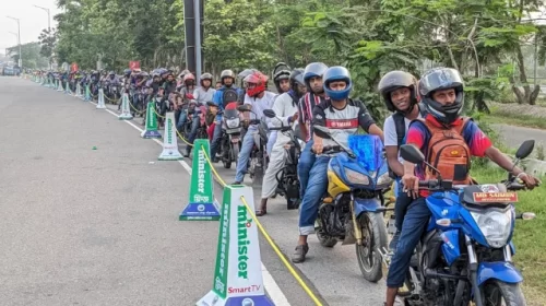 উৎসবমুখর পরিবেশে বাইকারগণ পদ্মা সেতু পার হচ্ছেন।