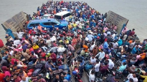 ফেরিতে পদ্মা পাড়ি দিল মোটরসাইকেল
